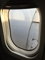 Stayed up at the parents’ house last night and woke up bright and early to catch three flights. I did sleep approximately 3 hours on 2 of the flights. Not too bad since, as you can see, my view on the first flight was obscure. How was I supposed to see if we were crashing? Right… the engine by my head would be on fire. Nevermind. I also have quite the head cold/runny nose… yuck. As long as I have a voice to present tomorrow, I’ll be happy!