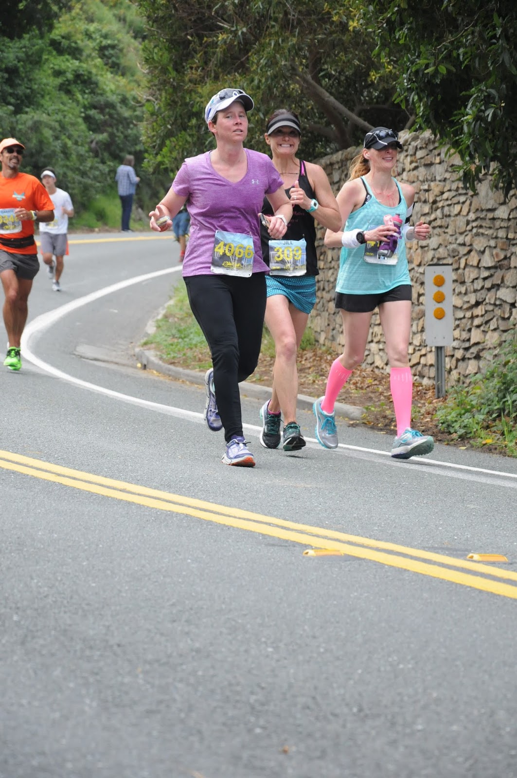 Toenails aside, I went into this race with the hope that I can “beat Oprah” (she ran a 4:30 in her prime). My goal was to finish in 4 hours, but knew Big Sur is a VERY challenging course. (Google it or check out some videos on youtube). My cousin concured we just need to “arrive alive!” She and her dad would be running the race, as well.